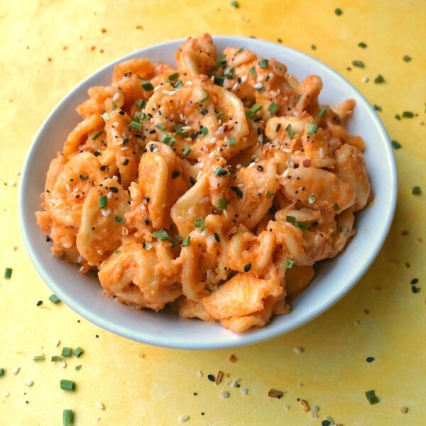 This easy pasta recipe only takes about 30 minutes to make and is EVERYTHING (but the bagel).