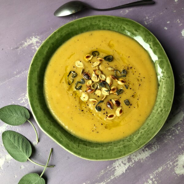 Cozy sweater weather calls for a comforting (and seasonal) bowl of this white pumpkin sage soup.